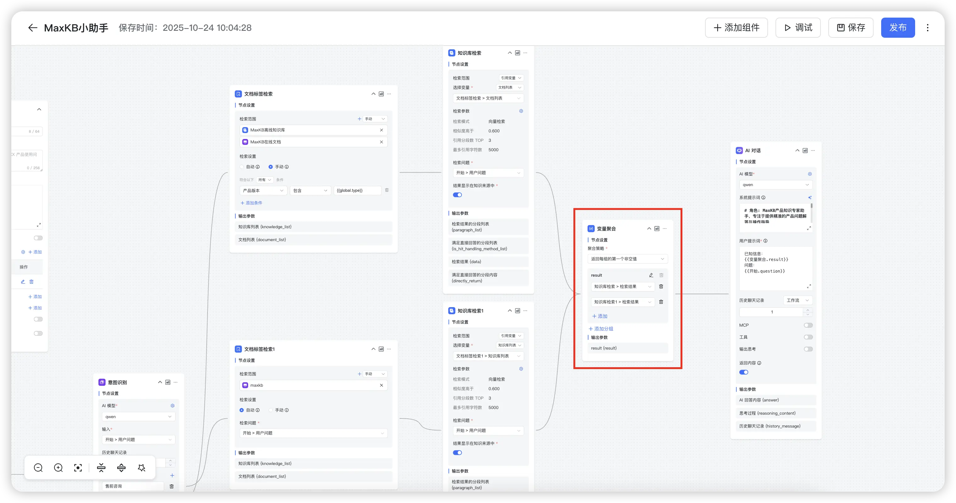 MaxKB v2.3.0社區版在高級編排應用中還新增了變量拆分、變量聚合、參數提取及視頻理解等多個節點,進一步覆蓋複雜應用流程的相關場景,致力於降低智能體搭建的門檻。