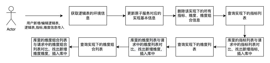 邏輯表向原子服務同步的核心邏輯是 “先刪後增”:刪除舊數據→對比新老數據→插入新增數據,具體流程如下:
