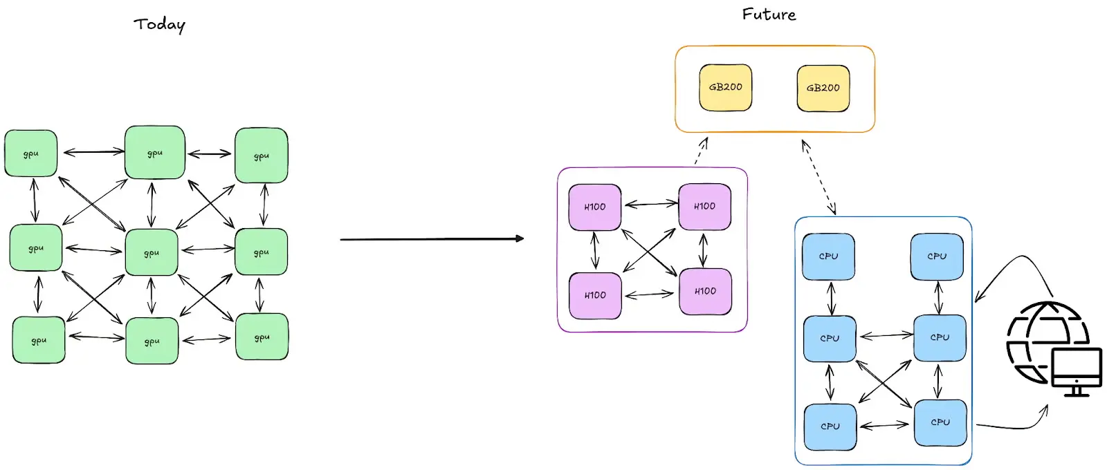 在傳統多控制器架構中,開發者需要手動管理同步、故障恢復、跨節點通信等複雜細節,而 Monarch 將這些過程完全自動化。它將集羣資源抽象為“可編程數組 (meshes)”,用户可以像操作張量一樣操控整片 GPU 網格,實現代碼的高度可擴展性。