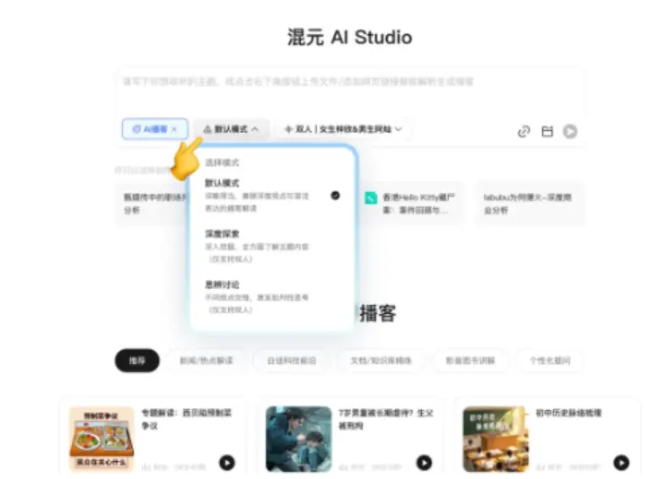 體驗交互式 AI 播客的用户只需訪問騰訊混元官網,點擊 “AI 播客” 選項,便可暢享這一全新播客體驗。