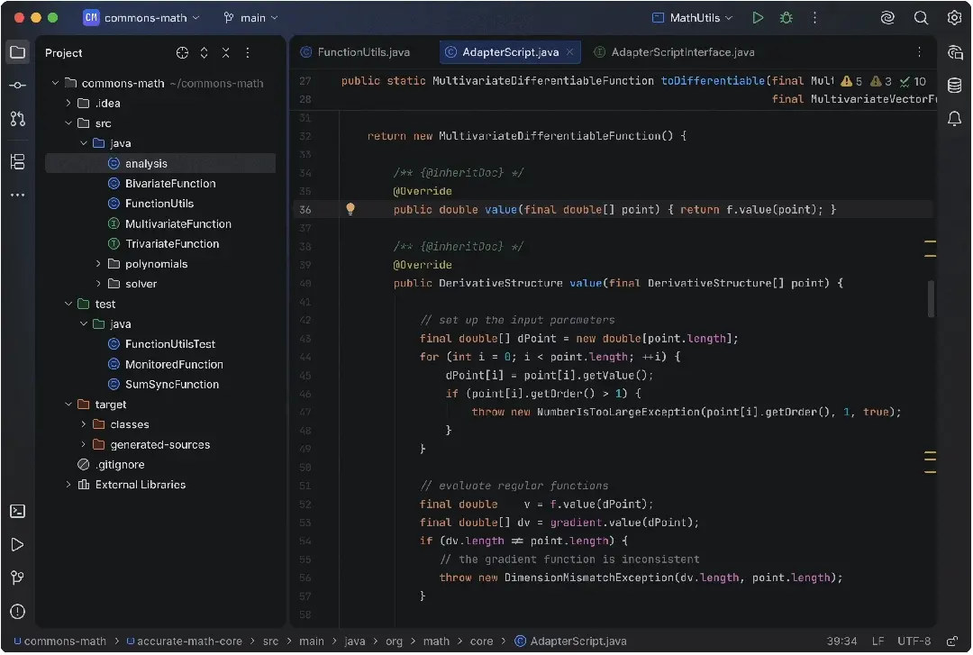在調查與訪談中,參與者認為 Islands 主題具有現代、清晰直觀且易於導航的特點,同時編輯器與工具窗口之間的視覺區分度也更高。 許多參與者還對標籤頁和導航元素的可見性提升表示認可。 整體而言,用户對Islands主題的接受度很高,並且願意將其作為默認主題使用。