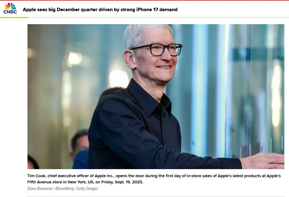 這一消息發佈之際,蘋果剛公佈其 2025財年第四季度財報:公司錄得 1025億美元收入,同比增長 8%,創下季度新高。儘管上月剛推出的 iPhone17系列 尚未全面體現AI升級計劃,但庫克表示,AI技術將在未來的產品中扮演核心角色。