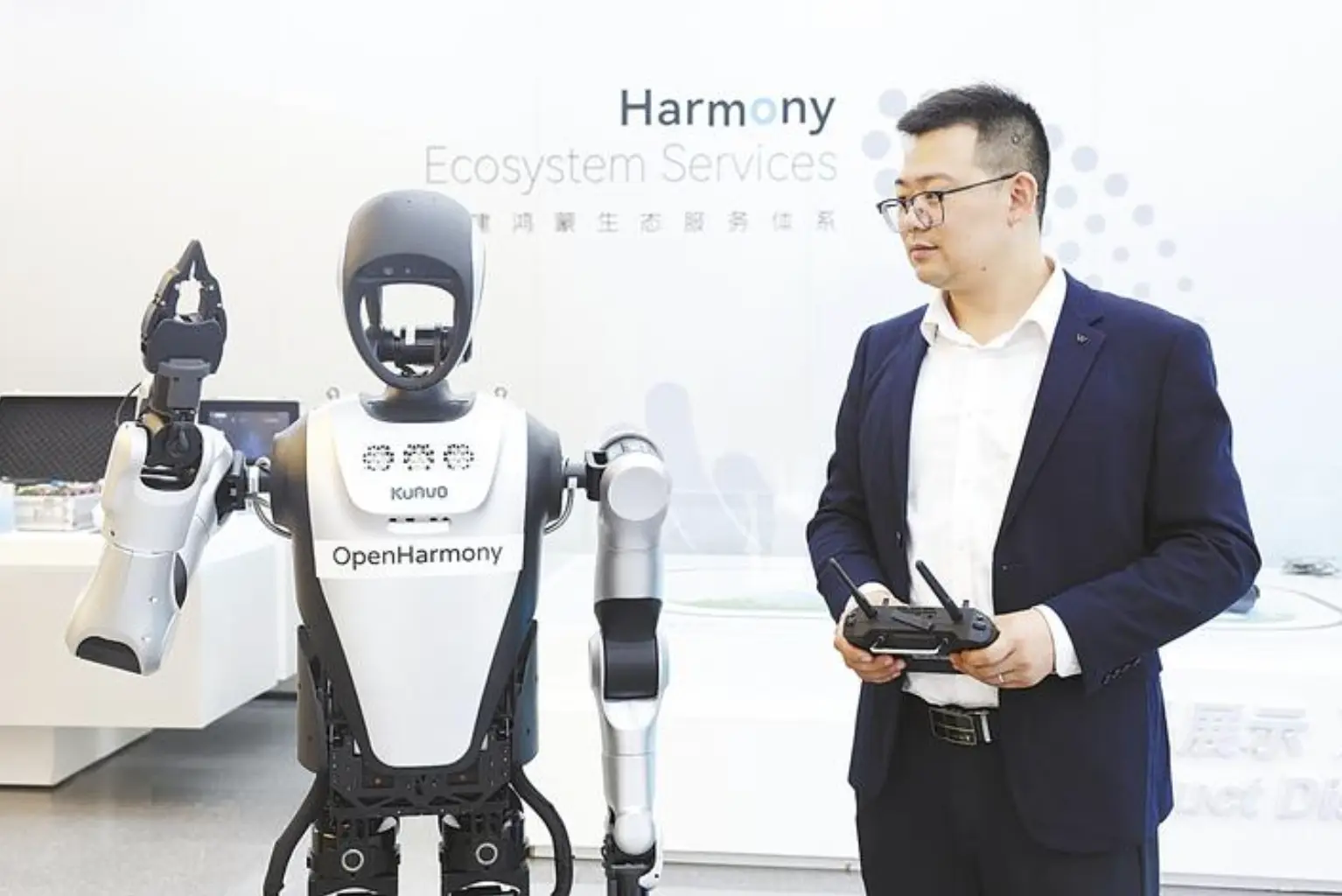 據「中國光谷」消息,10 月 28 日,鴻蒙生態(武漢)創新中心的智慧展廳,國內首款搭載開源鴻蒙系統的機器人“夸父”驚豔亮相。