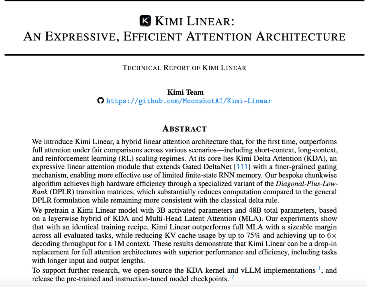 Kimi Linear 技術報告:https://github.com/MoonshotAI/Kimi-Linear/blob/master/tech_report.pdf