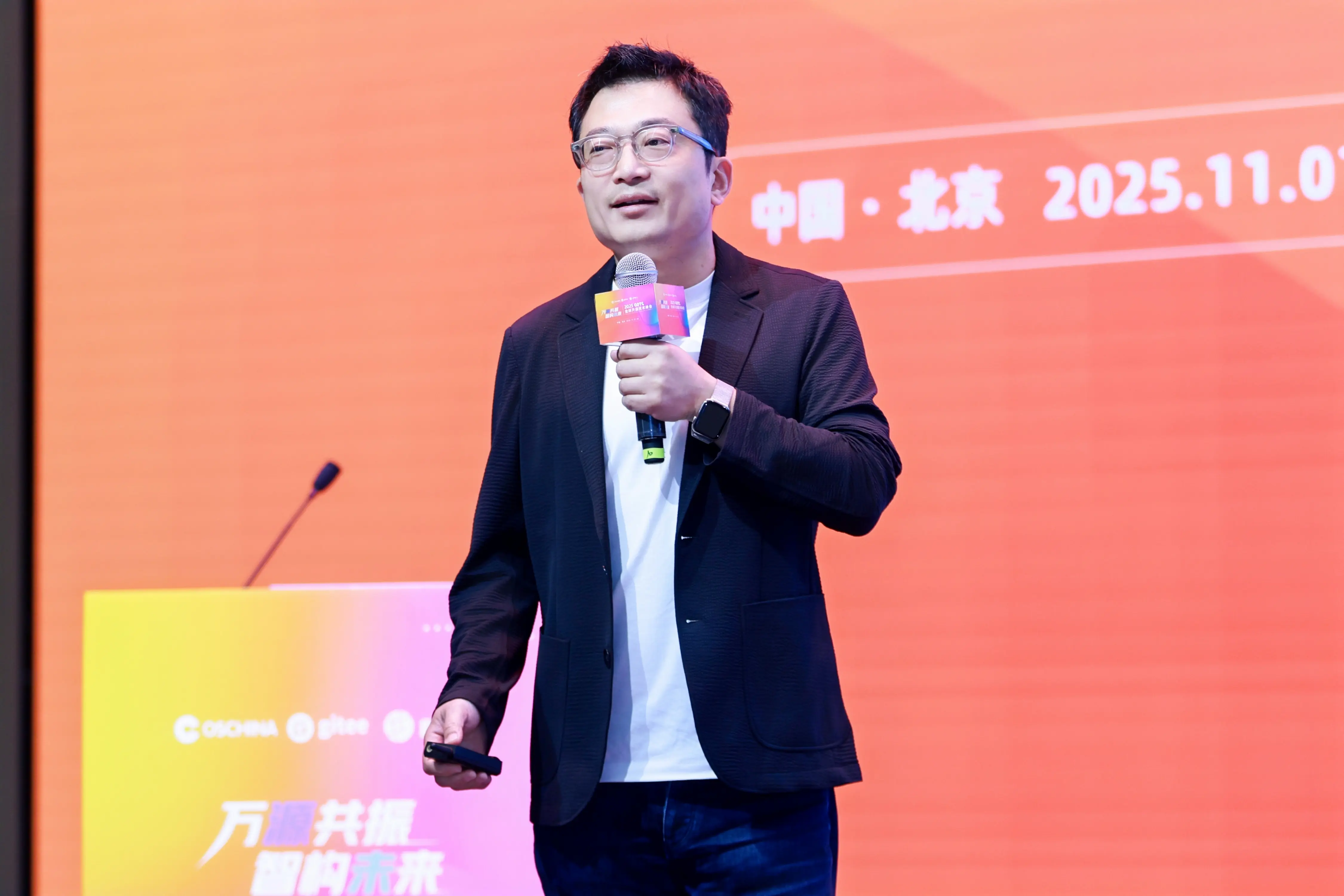 零一萬物聯合創始人 馬傑(左)、開源中國創始人、CTO 劉冬(右)聯合發佈OAK平台