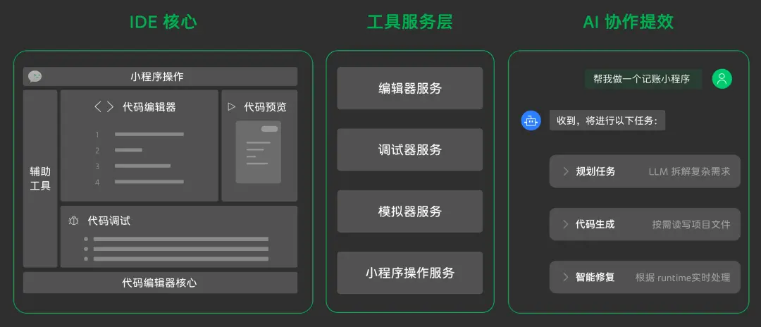 基於升級後的內核,「新版開發者工具」構建了一系列讓 AI 與 IDE 無縫協作的機制,將服務層進行了抽象和封裝,提煉成 AI 可以直接調用的工具和服務。