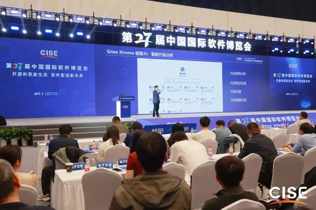 10月16日,開源中國鄭州研發中心總經理常毅受邀出席第27屆中國國際軟件博覽會「人工智能+軟件」分論壇並發表演講。常毅圍繞《智能 DevOps,企業級 DevOps 全域智能體系》,系統介紹了 Gitee 在企業智能研發領域的探索與實踐,全面展示了以「Gitee DevOps + Xtreme 極智 AI」為核心的智能化研發體系。