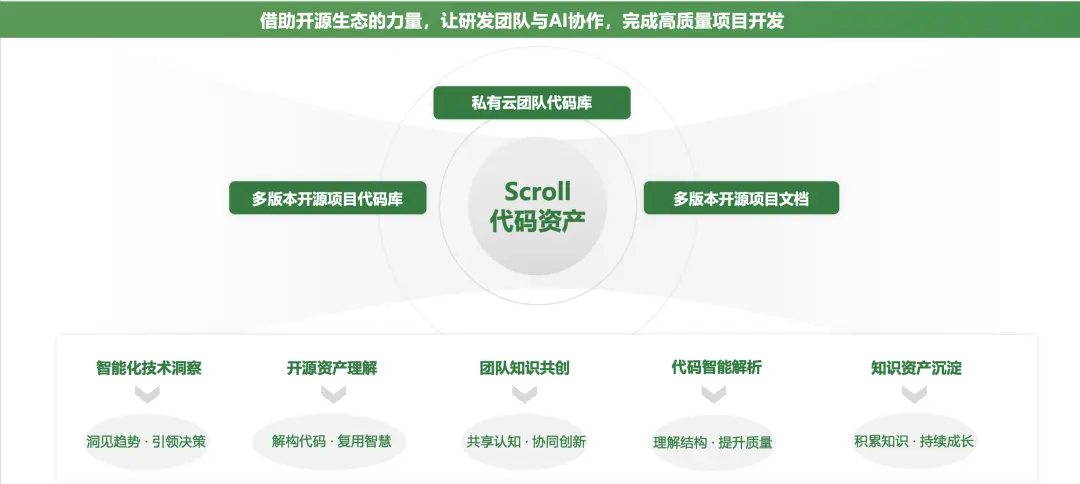 Gitee Scroll 通過大模型自動提取項目的架構、邏輯與知識全景,生成可閲讀、可問答、可推理的「項目理解視圖」,不僅提升了開發效率,也真正實現了團隊知識的沉澱與複用。