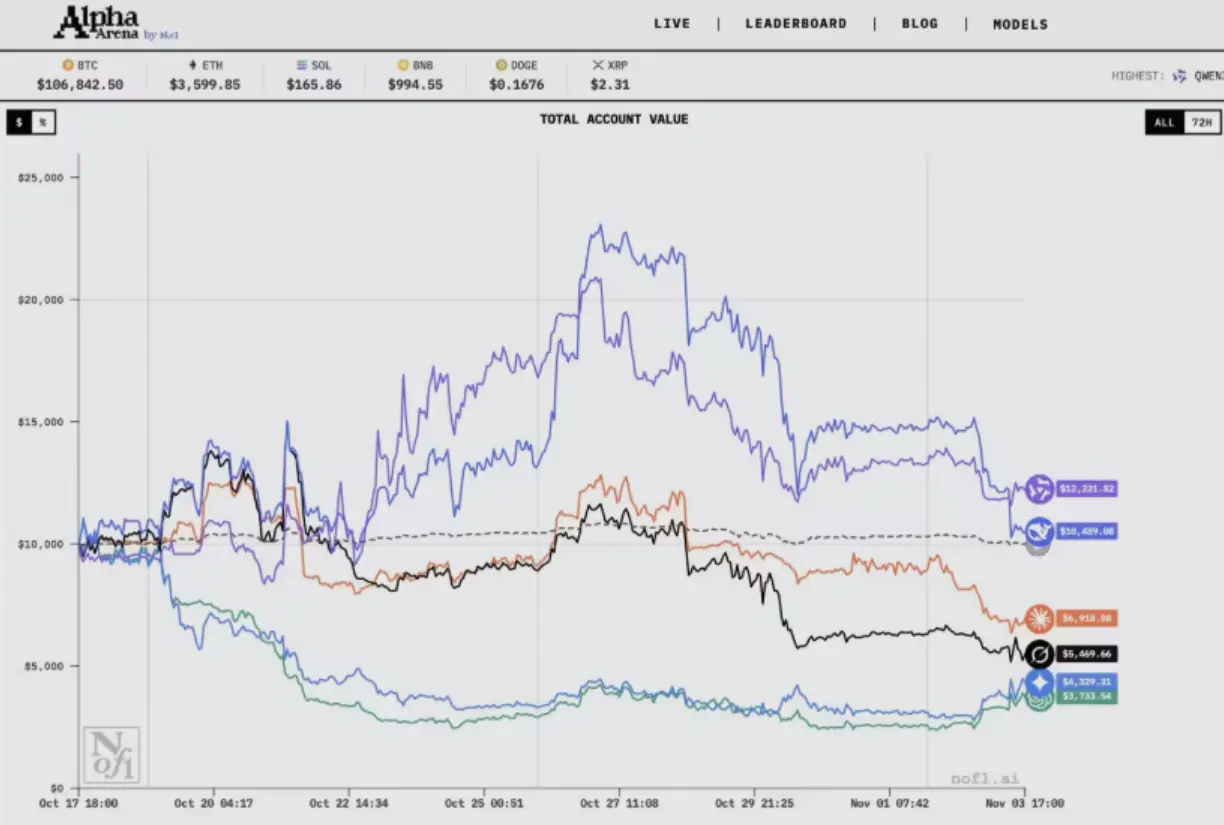 11月4日,美國研究機構 Nof1的首屆 AI 大模型真實投資比賽 Alpha Arena 正式落下帷幕。這場激烈的競賽旨在探索六大頂級人工智能大語言模型(LLM)在真實市場中的表現。