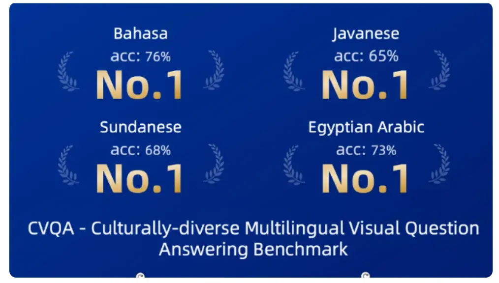 根據測試結果,與同等規模的開源模型相比,該框架在主流多語言視覺問答(Multilingual Visual Question Answering, VQA)基準測試中準確率提升了約9.5%,在部分任務中甚至優於 GPT-4o 和 Gemini-2.5-flash 等國際主流閉源模型,獲得評測總分第一。