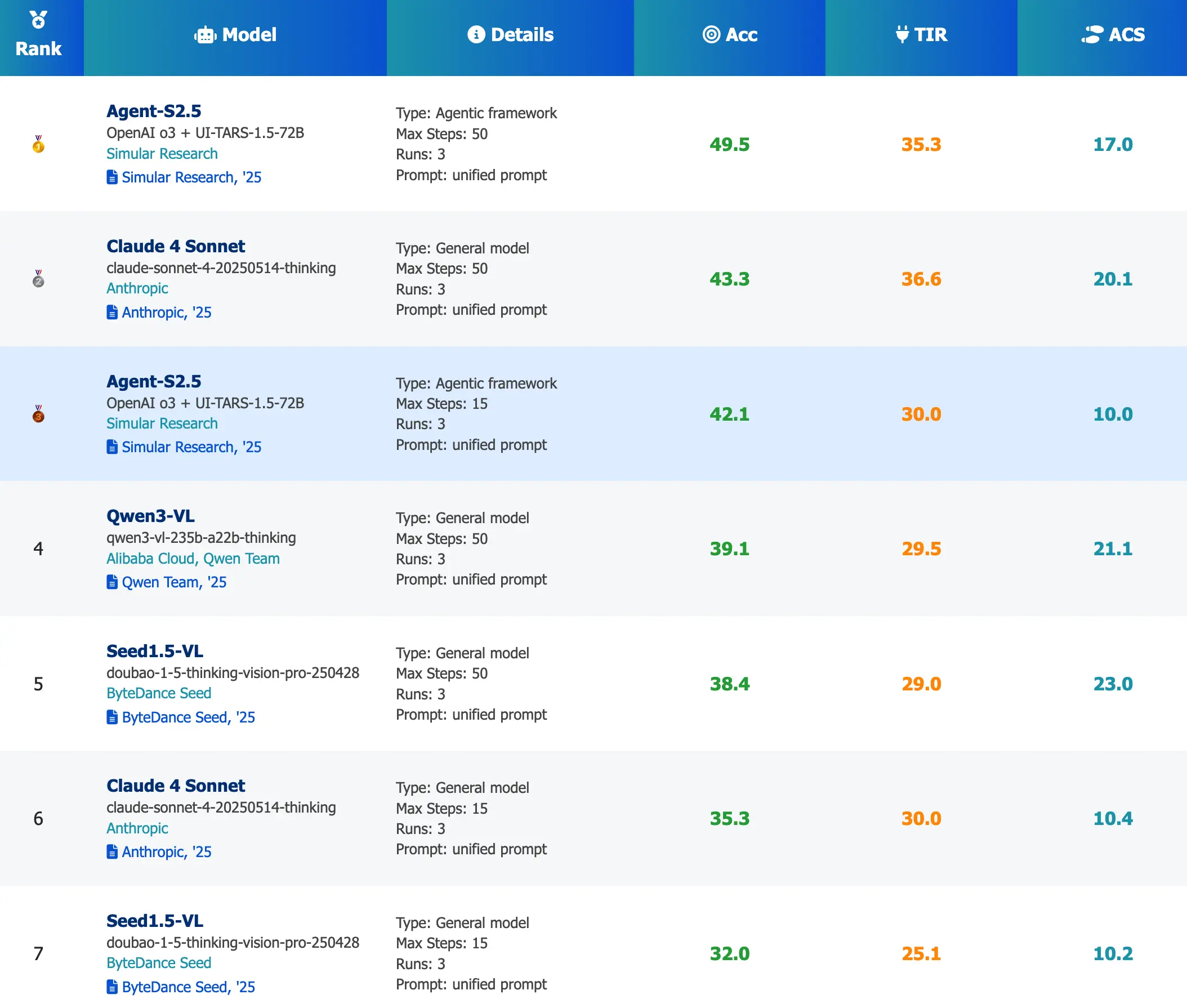 - 觀察到的最高工具調用率 ( TIR ) = 36.3%(Claude-4-Sonnet,50 步)→ 表明仍有很大的改進空間