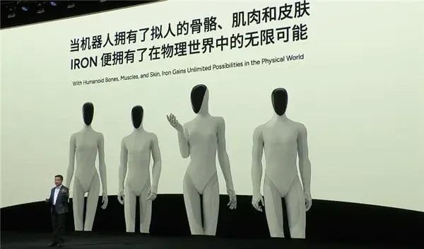 IRON 具備仿人脊椎、仿生肌肉與全包覆柔性皮膚,頭部配備 3D 曲面顯示屏,雙肩與雙臂採用靈動仿生設計,整體可實現 22 個自由度的精密控制。其步態更趨自然,可完成穩定行走、姿態調整及手部精細操作。