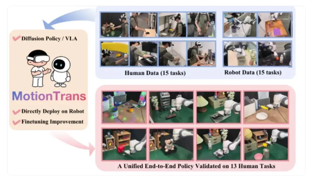 清華大學、北京大學、上海交通大學和武漢大學等高校聯合發佈了一種名為 MotionTrans 的人機協同訓練框架。