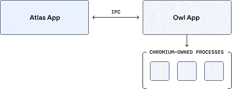 OWL架構使得Atlas能夠實現近乎瞬時的啓動,因為界面可以先於Chromium後台初始化完成繪製。