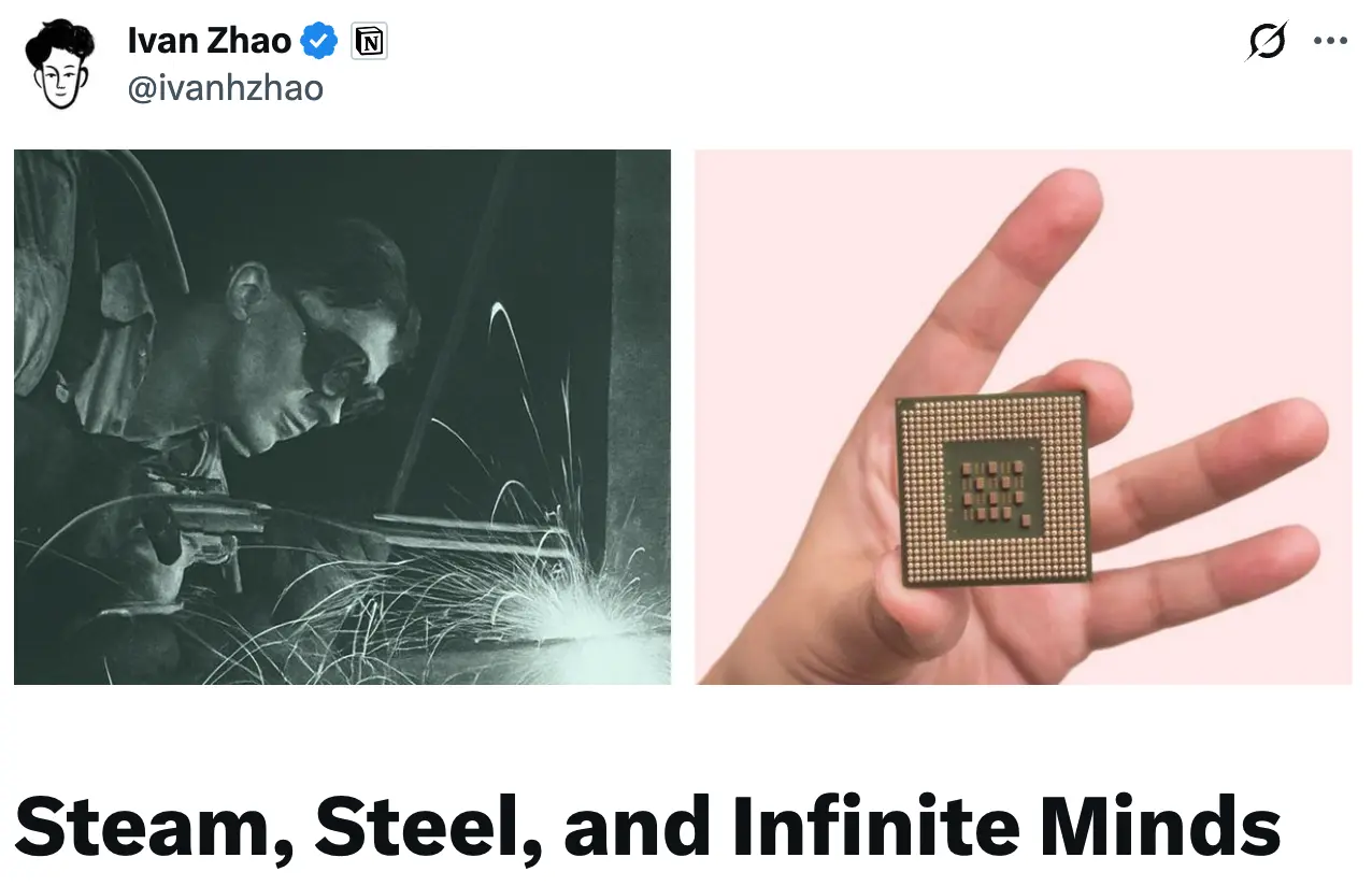 Notion創始人Ivan Zhao為AI寫了一篇雄文:蒸汽、鋼鐵和無限量的智能。