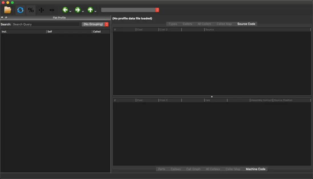 安裝完成之後,就可以打開 qcachegrind 應用了,圖形界面如下: