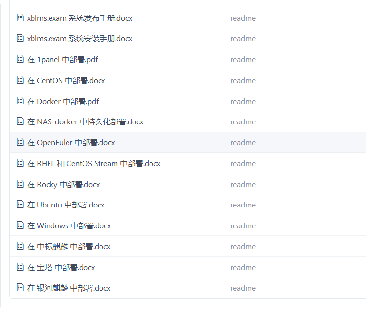 項目配有各系統的部署和發佈文檔,具體如下圖所示: