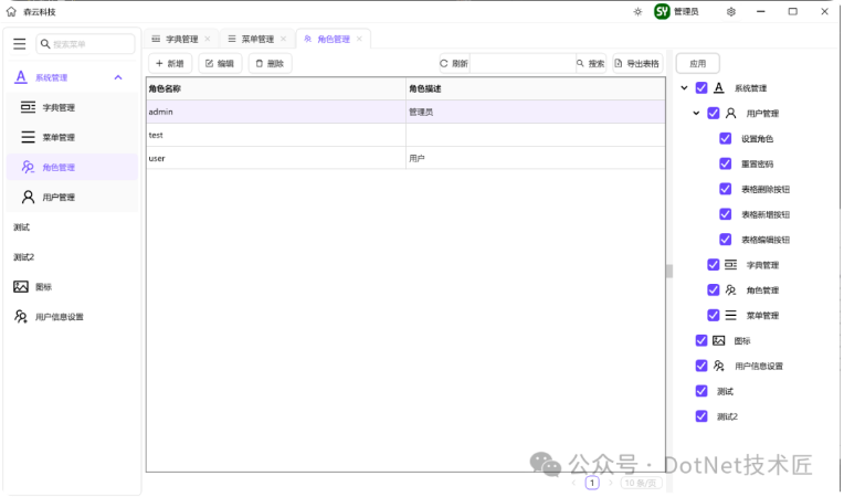 菜單管理:實現菜單的增刪改查,支持自定義頁面控件和樣式。