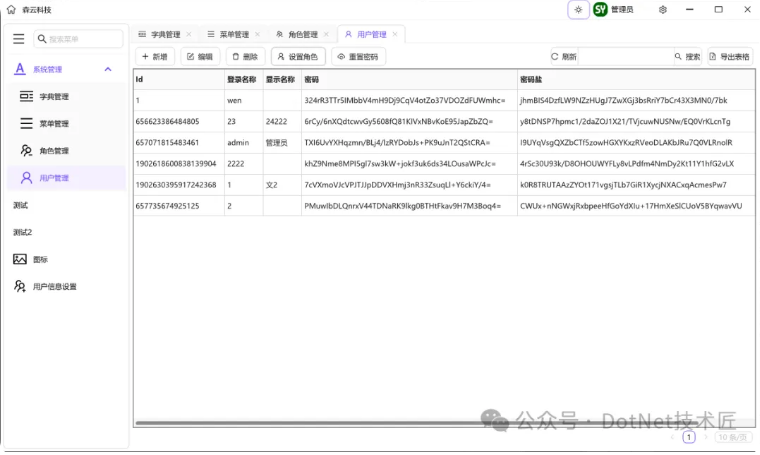 用户管理:支持用户的增刪改查、角色分配和密碼重置。