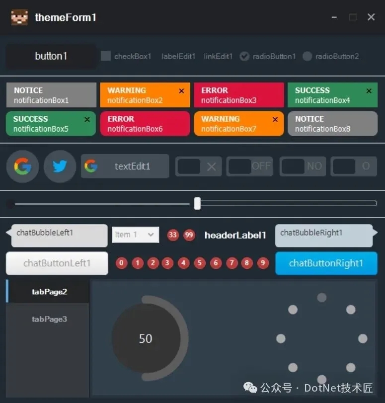 這款庫專注於"自定義控件"的深度打磨,尤其強調觸屏友好性。所有控件均為原生 C# 編寫,不依賴第三方 DLL,穩定性高。如果正在開發運行在平板、工控機或觸摸一體機上的應用,HZHControls 提供的旋鈕、儀表、滑塊等控件會非常實用。