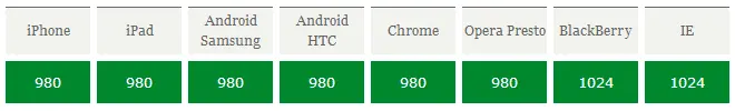 下圖為常見一些設備瀏覽器默認viewport寬度: