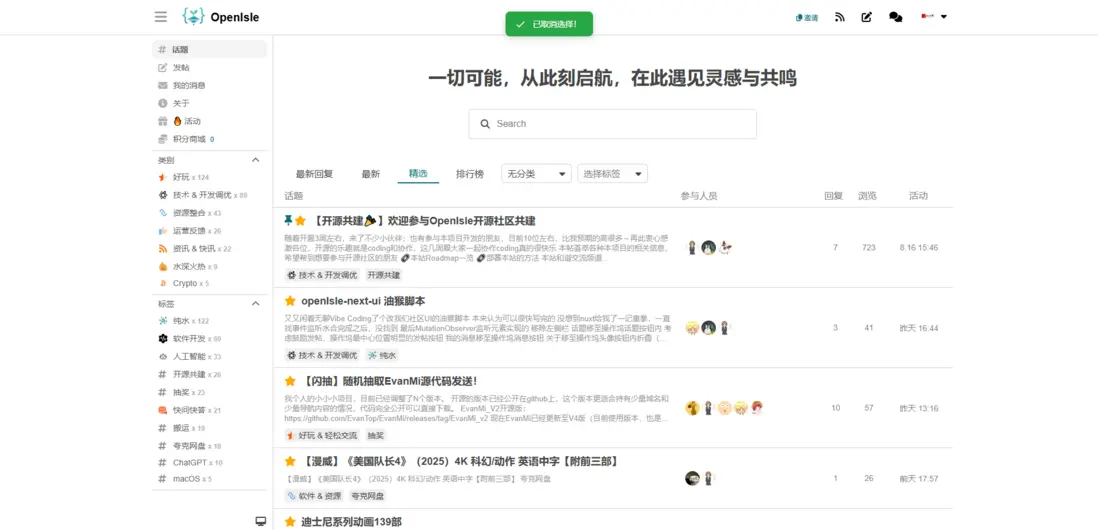 如果你想搭建一個技術交流社區或者是興趣愛好圈子,OpenIsle 都能滿足需求。你可以根據自身需求,對其進行定製化開發,打造一個獨一無二的社區空間~