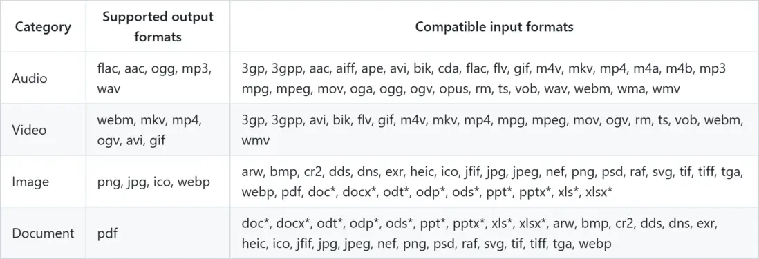 • 多種文件格式支持:支持視頻、音頻、圖像、文檔數十種文件格式的轉換