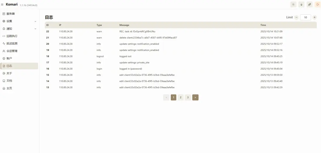 Komari 第一次運行時會自動生成一個用户名和密碼,供登錄使用,需要在日誌中查看。