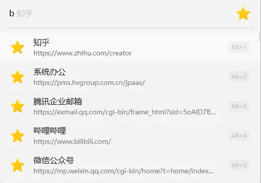 輸入前綴 b + 內容搜索並瀏覽器書籤。