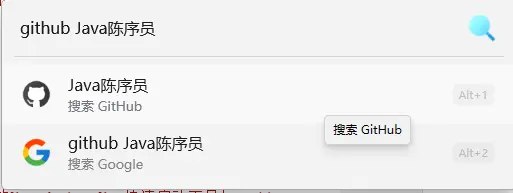 - 網頁直達:支持通過輸入關鍵詞+回車直接用默認搜索引擎查詢,也能通過 Github 關鍵詞、Youtube 關鍵詞等指定平台搜索