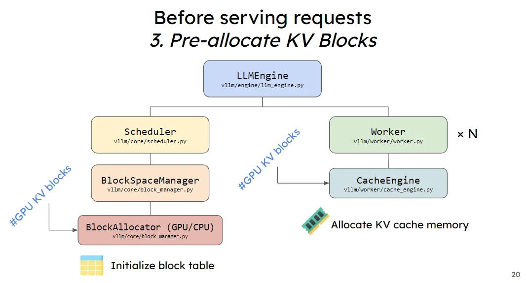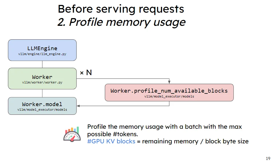 這個給過程的的話首先是去計算預分配的KV Cache大小,而後將預分配的KV Cache加載(一般就是初始化為0的向量)到gpu上