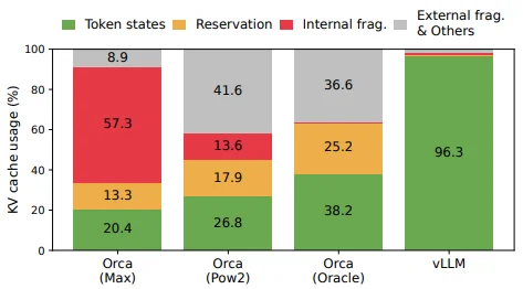 1、預留浪費 (Reserved):為將來可能的 token 預留的空間,這些空間被保留但暫未使用,其他請求無法使用這些預留空間;