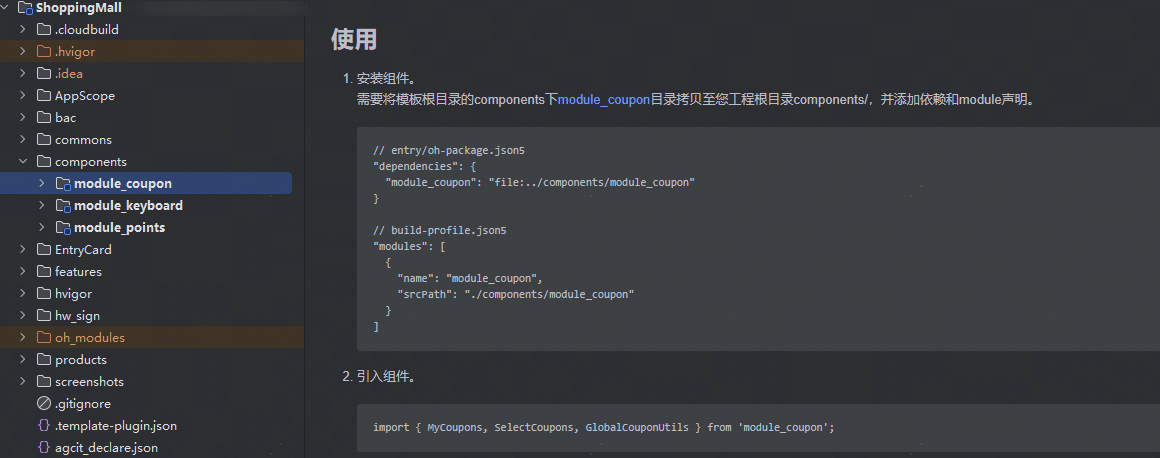 若開發者已搭建好自己的應用工程,但暫未實現其中的部分場景能力,可以選擇取用其中的業務組件,集成在自己的工程中。