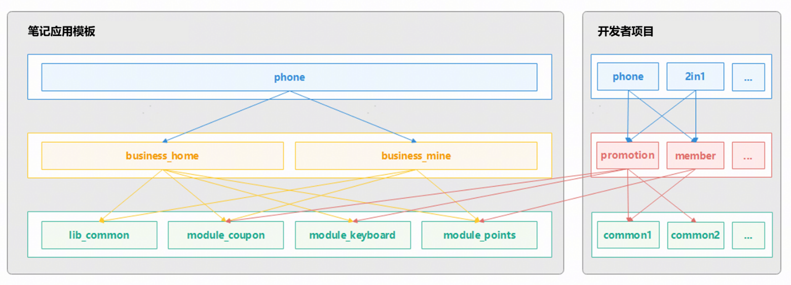 - 公共能力層:存放公共能力,包括公共UI組件、數據管理、外部交互和工具庫等共享功能。