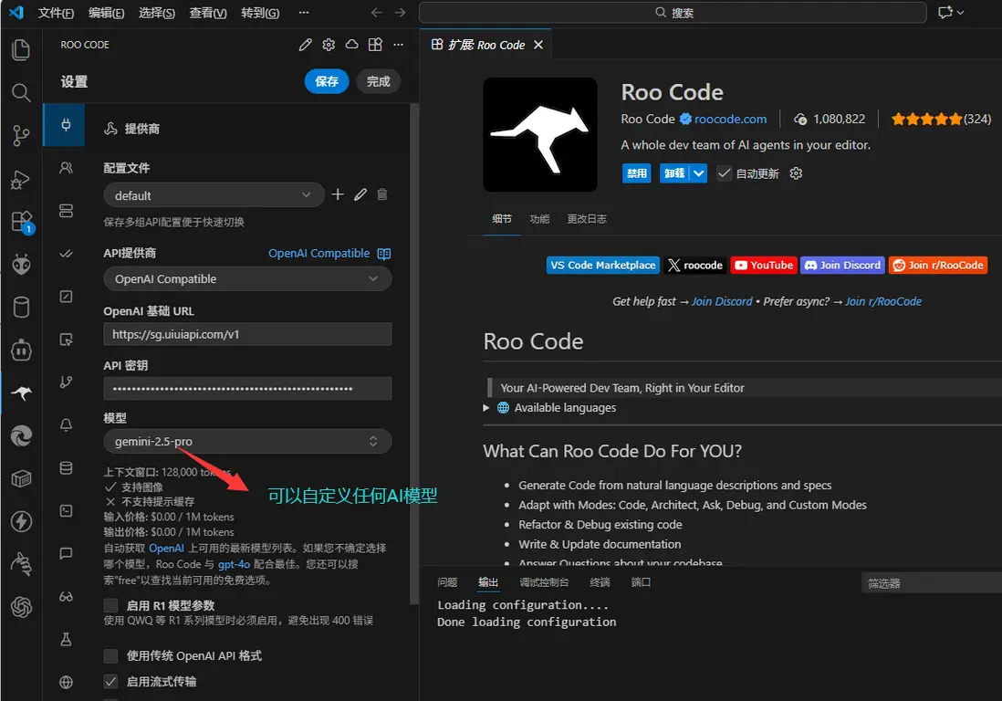 - Roo Code 允許你設置“自定義指令”。建議你在那裏添加:“請始終使用中文回答”、“代碼註釋請使用中文”等要求,以便更符合你的使用習慣。