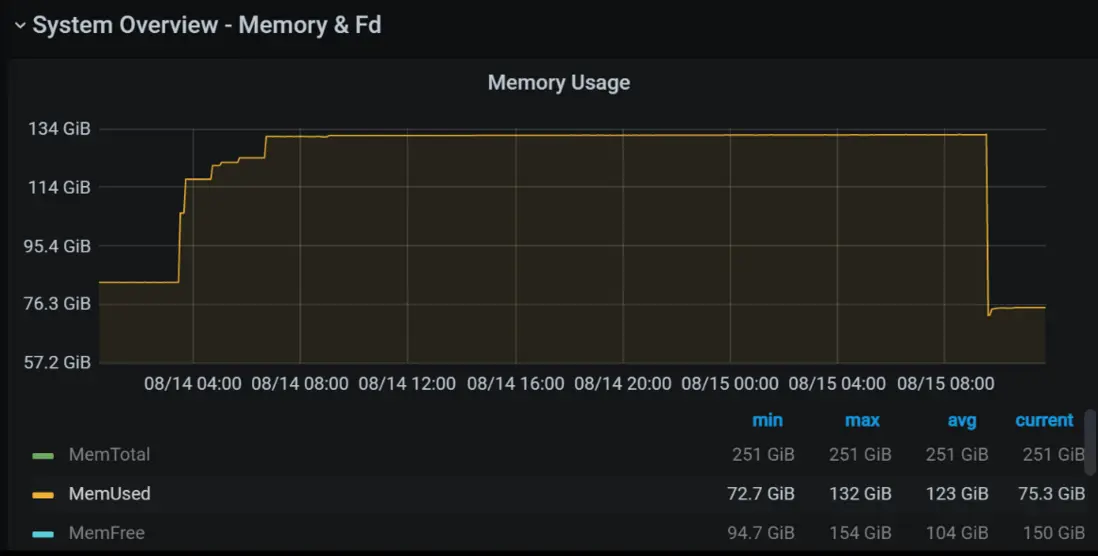 通過上面的監控圖,基本可以確認故障發生時的時序關係:
