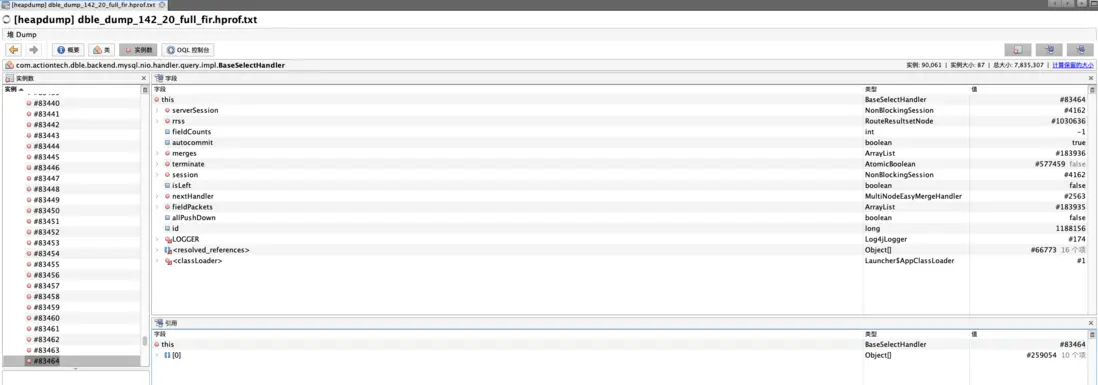當業務流量比較大時,堆內存被迅速消耗,從而導致頻繁的fullgc。這樣dble來不及處理MySQL實例心跳的返回報文,就引發了生產上的一些列問題。