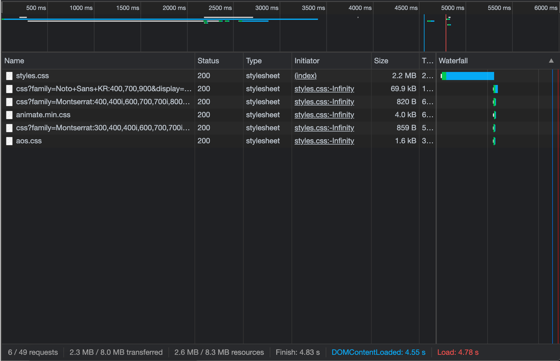 In worst-case scenarios, all aforementioned issues combined can result in a large CSS file size, even with the CSS minification applied. This CSS is usually render-blocking, so the browser won’t even render the website content until it has finished downloading and parsing the CSS file, resulting in a poor UX and performance on slower or unreliable networks.
