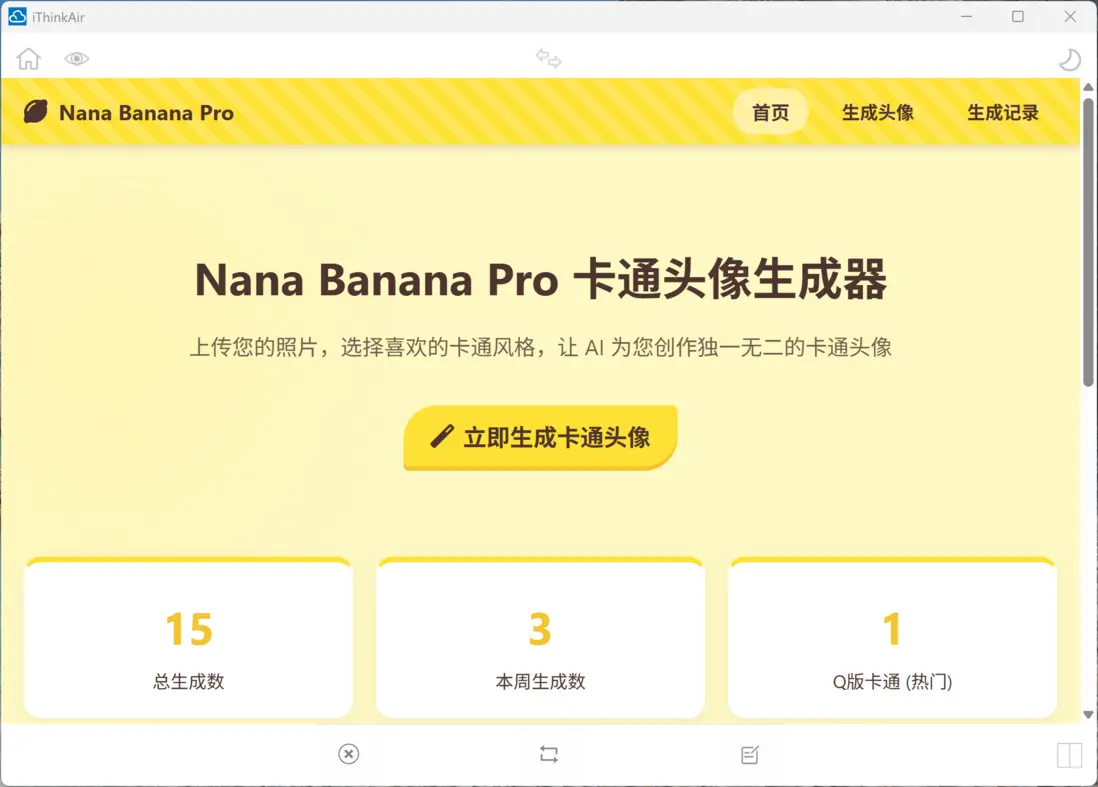 之前在秒噠上玩過一個“Nana Banana Pro 卡通頭像生成器”,比較有意思,就拿這個應用來試試DeepSeek+iThinkAir氛圍編程的效果。