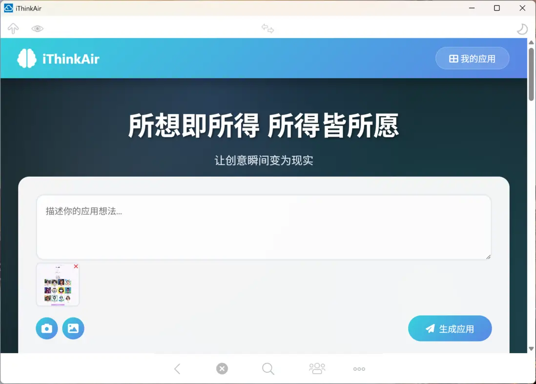 打開iThinkAir,添加這個截圖,不需要輸入任何Prompt文字,直接點“生成應用”。