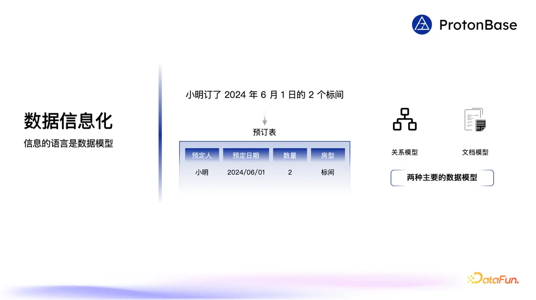 在信息層,會為數據賦予上下文意義,並以一定的結構化方式進行組織。數據就此被升級為信息,能夠被計算機理解和處理。這裏我們通過一個例子來展開介紹,“小明預訂了 2024 年 6 月 1 日的兩個標間”。