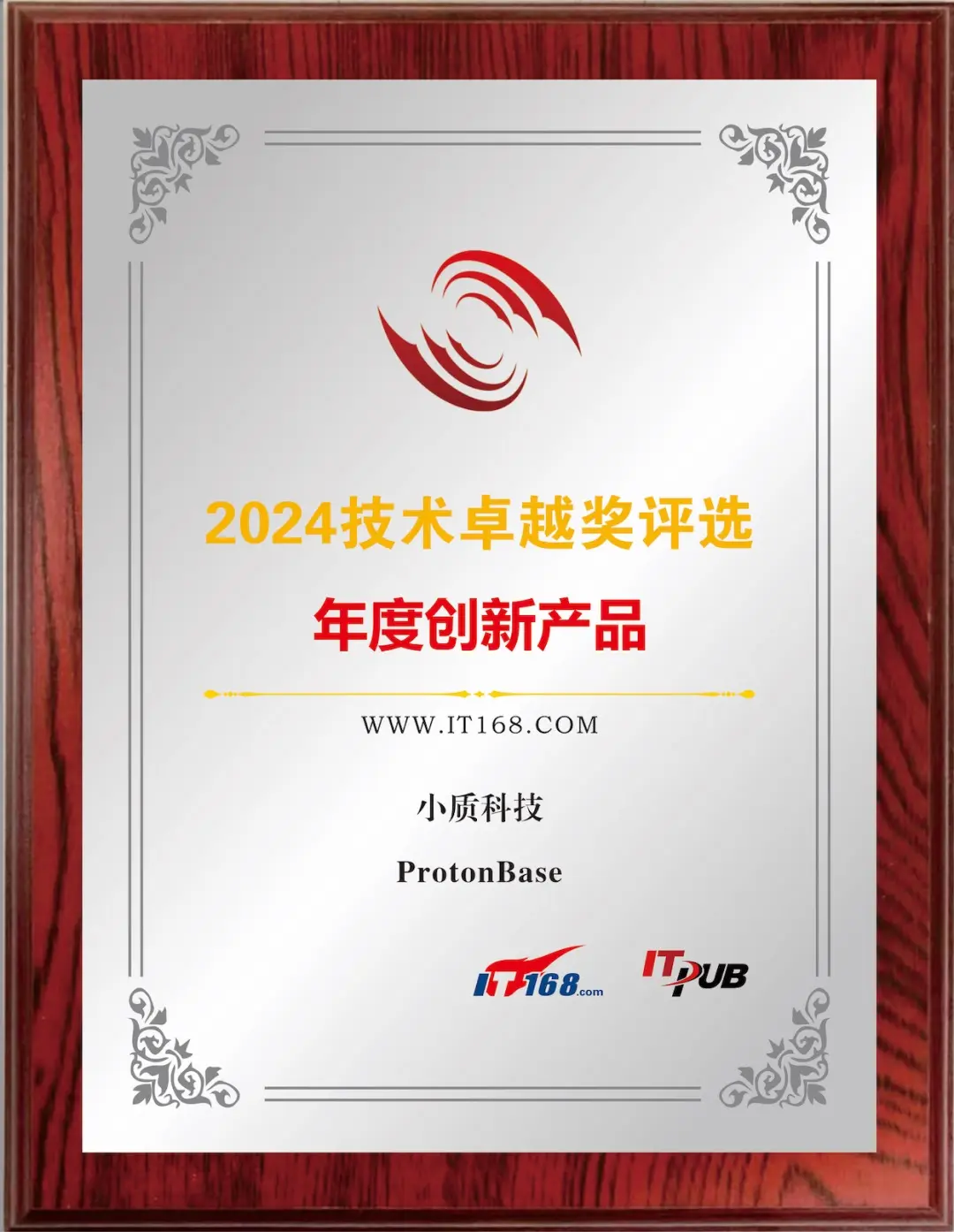 經過層層篩選,由 IT 界權威垂直門户 IT168 主辦的 2024 技術卓越獎評選結果正式公佈!在這一激烈競爭的行業盛事中,ProtonBase 憑藉其卓越的技術創新,榮獲「技術卓越獎·年度創新產品」獎項。