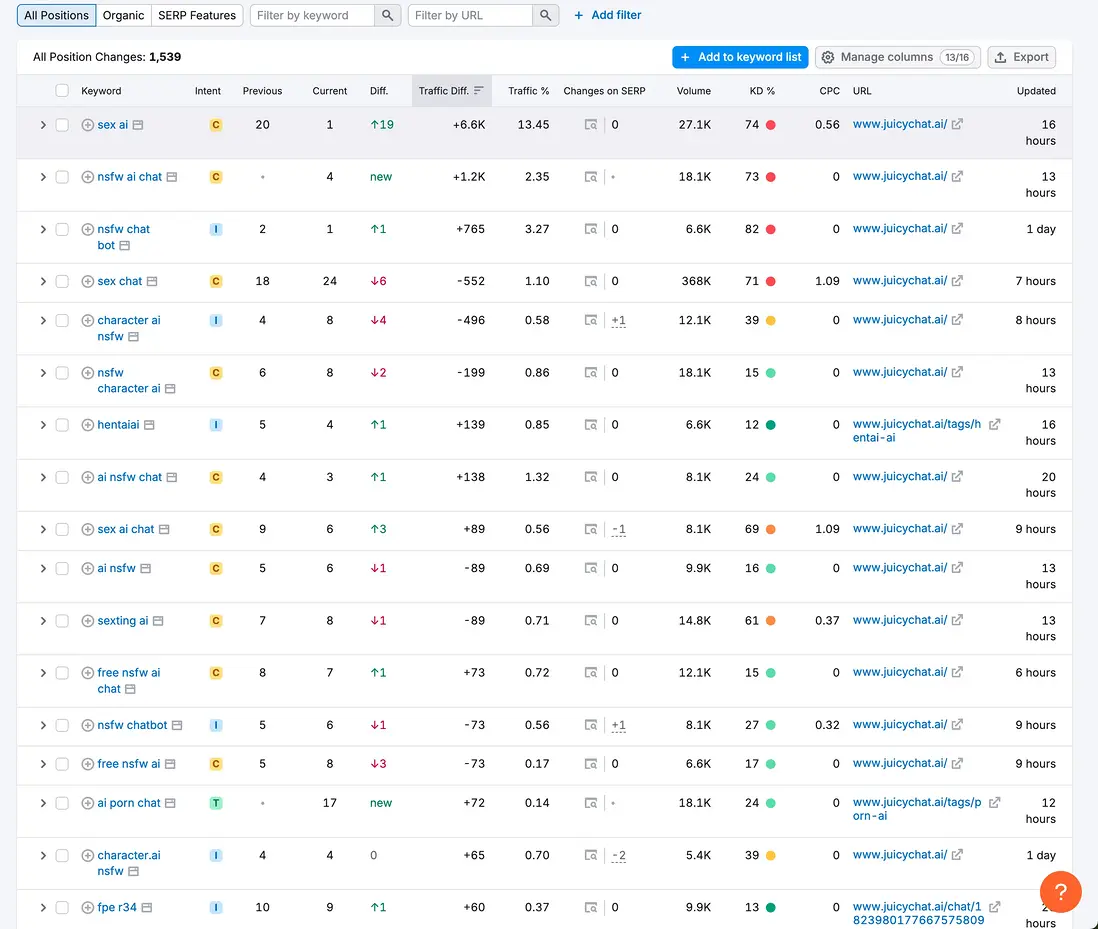 而接下來我們以性入手,去實戰分析一個AI網站如何通過這類關鍵詞獲得巨量流量。