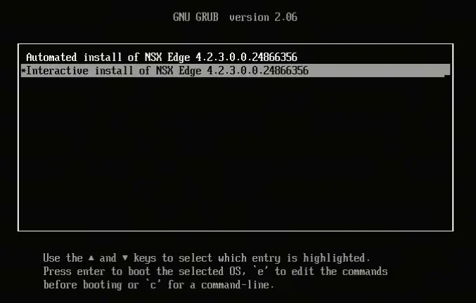 物理機啓動ISO後,選擇Interactive install of NSX Edge 進入手動安裝。