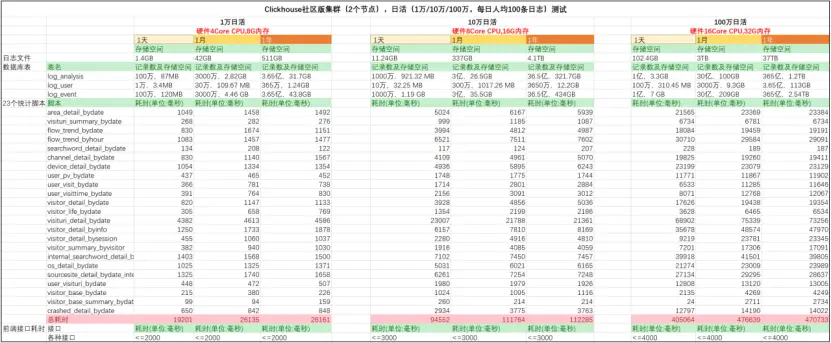 3)Clickhouse企業版集羣(2個節點), 100萬日活(人均100條日誌)