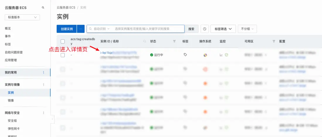 - 在<font style="color:#117CEE;">ECS管理控制枱</font>,找到想要部署到的ECS實例,點擊進入詳情頁。在定時與自動化任務裏找到構建部署。