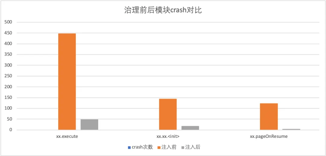 上線前後,從以下數據中可以看到,效果非常顯著。幾乎各個模塊都減少了90%的crash。數據對比效果如下: