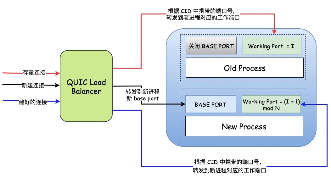 - 無論是否連接遷移,QUIC LB 都可以根據 ServerInfo,將報文轉發到正確的進程;