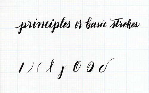 As we discussed earlier, there are eight basic strokes, also called principles, in the Spencerian Penmanship Theory Book. However, remember the two most important principles to keep in mind are the pressure you apply on the brush pen and the angle in which you hold it. Pressure is used to create the thick lines going down, while the release of the pressure creates the thin lines when you go up. These are two critical factors. The rest is an expansion of what we do naturally with a pen or pencil.