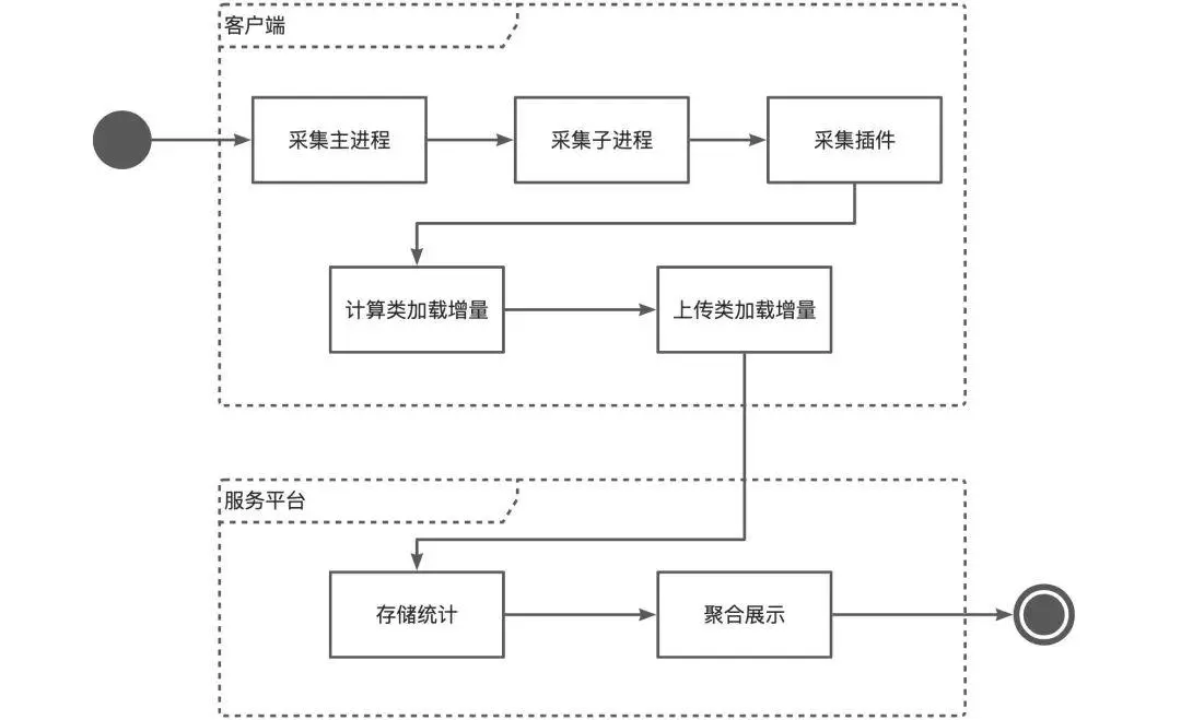 - 流程基於串行方式,由主進程控制,依次調用相應的接口採集主進程、子進程和插件的數據。